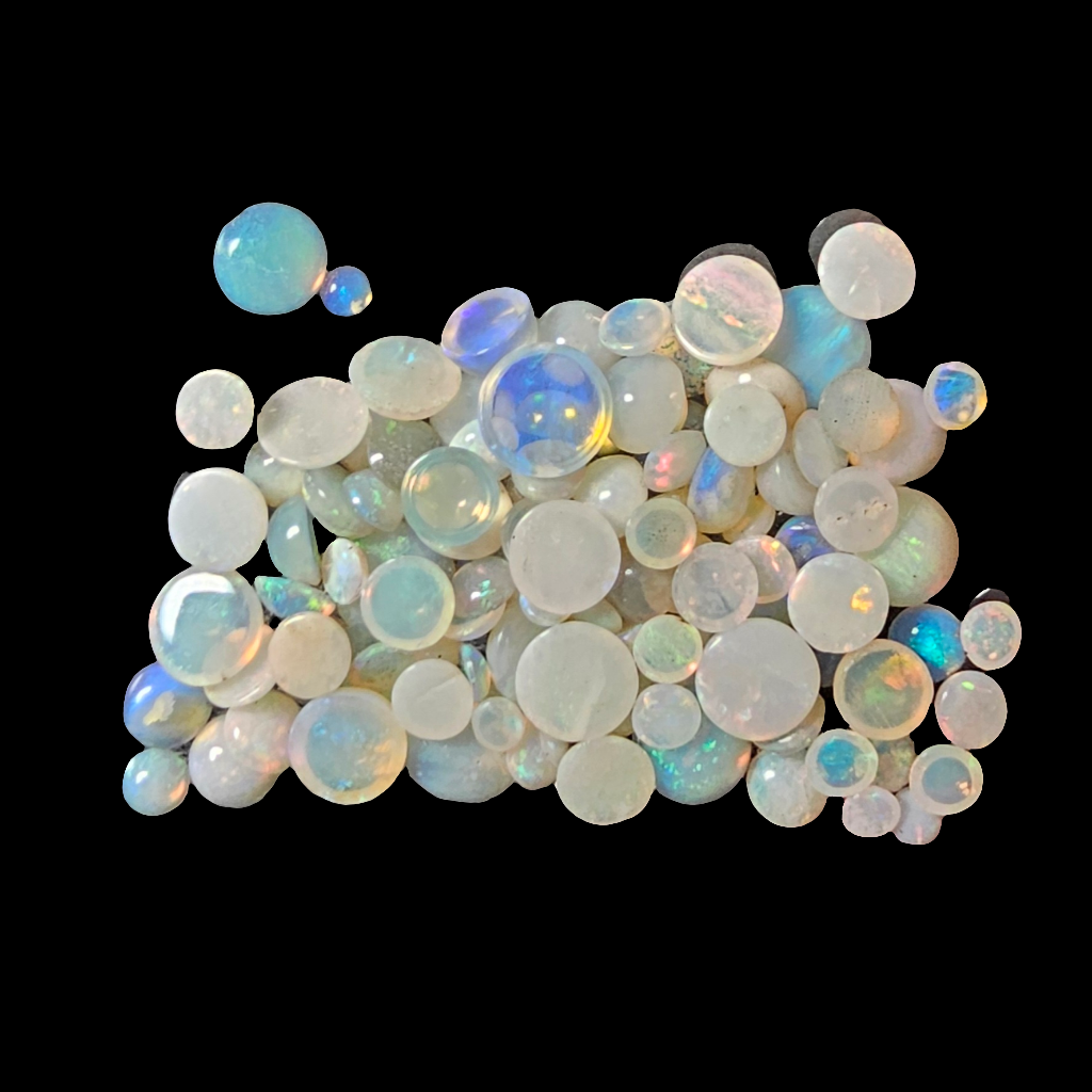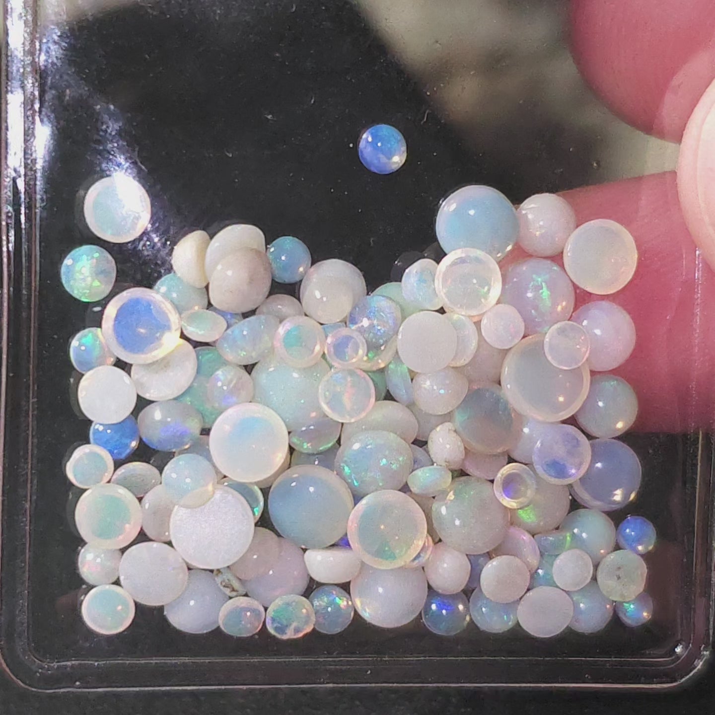Genuine Australian opal mined in Coober Pedy. This parcel has various sized low grade circle stones 5mm and under.