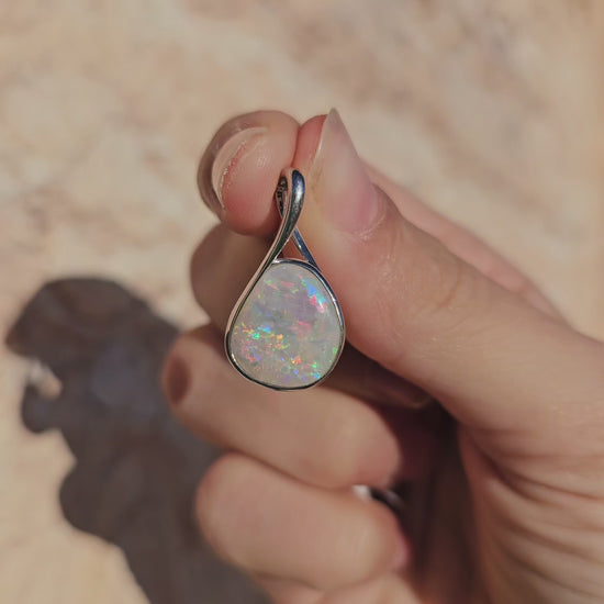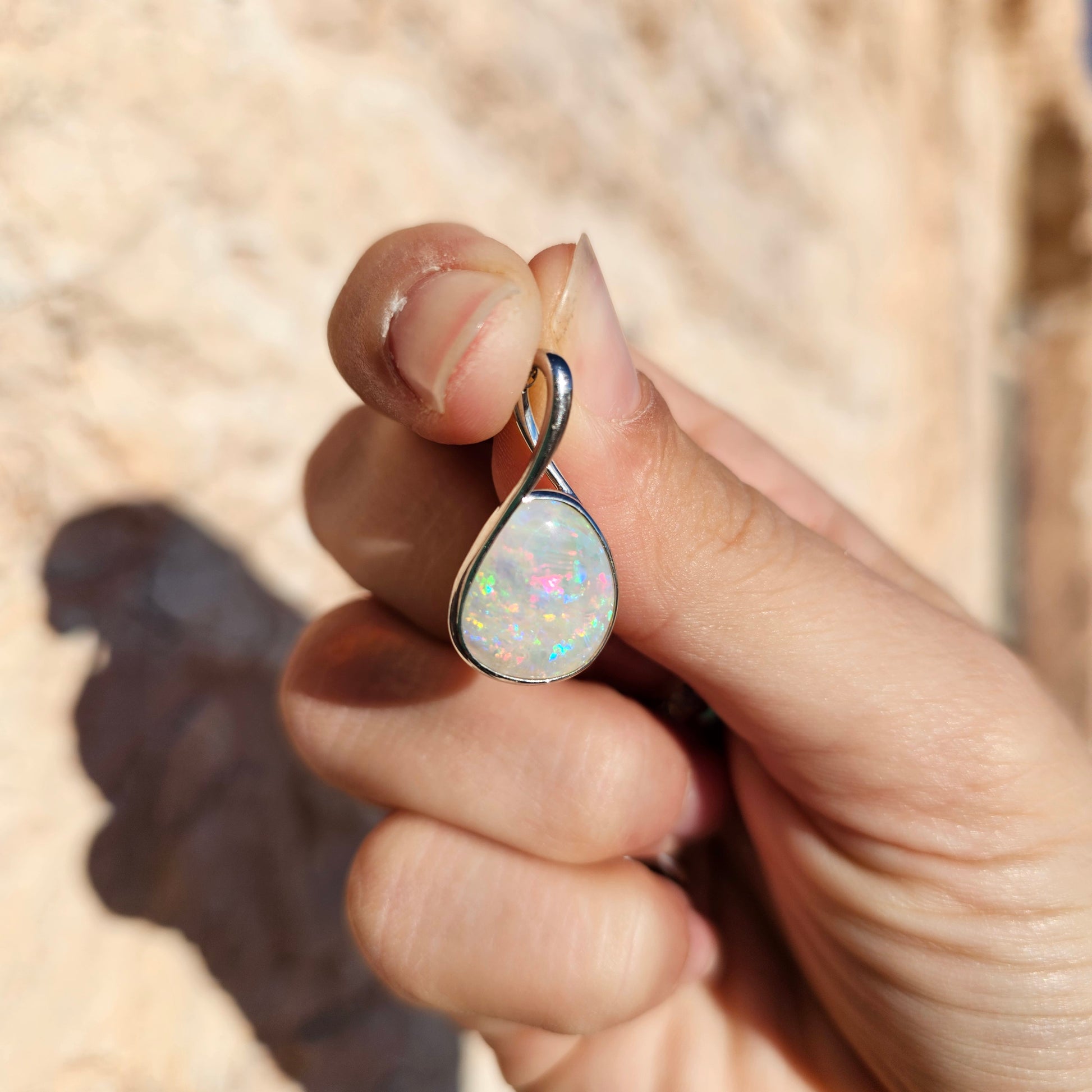 This beautiful piece has a light opal stone with full spectrum of colour showing beautiful red and purple flashes.