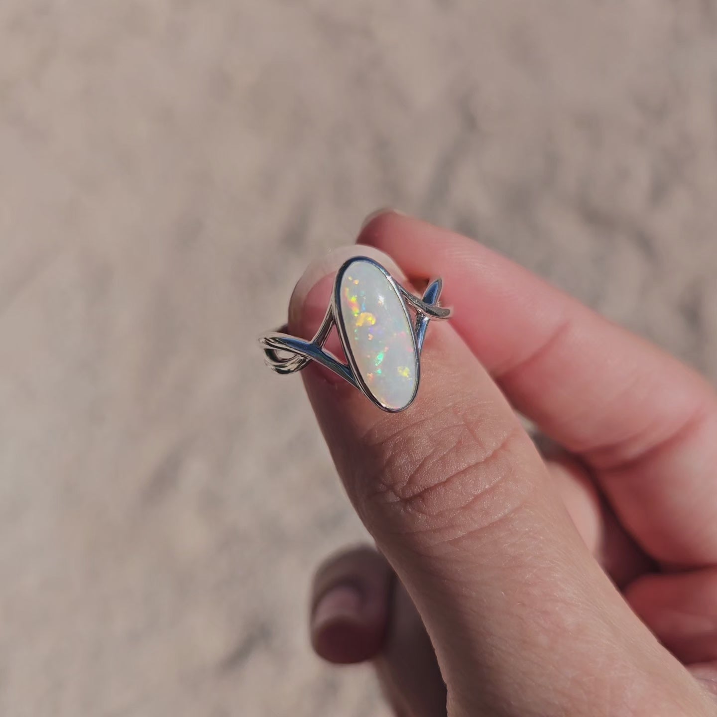 This beautiful piece has a light Opal Oval stone showing full spectrum of colour.