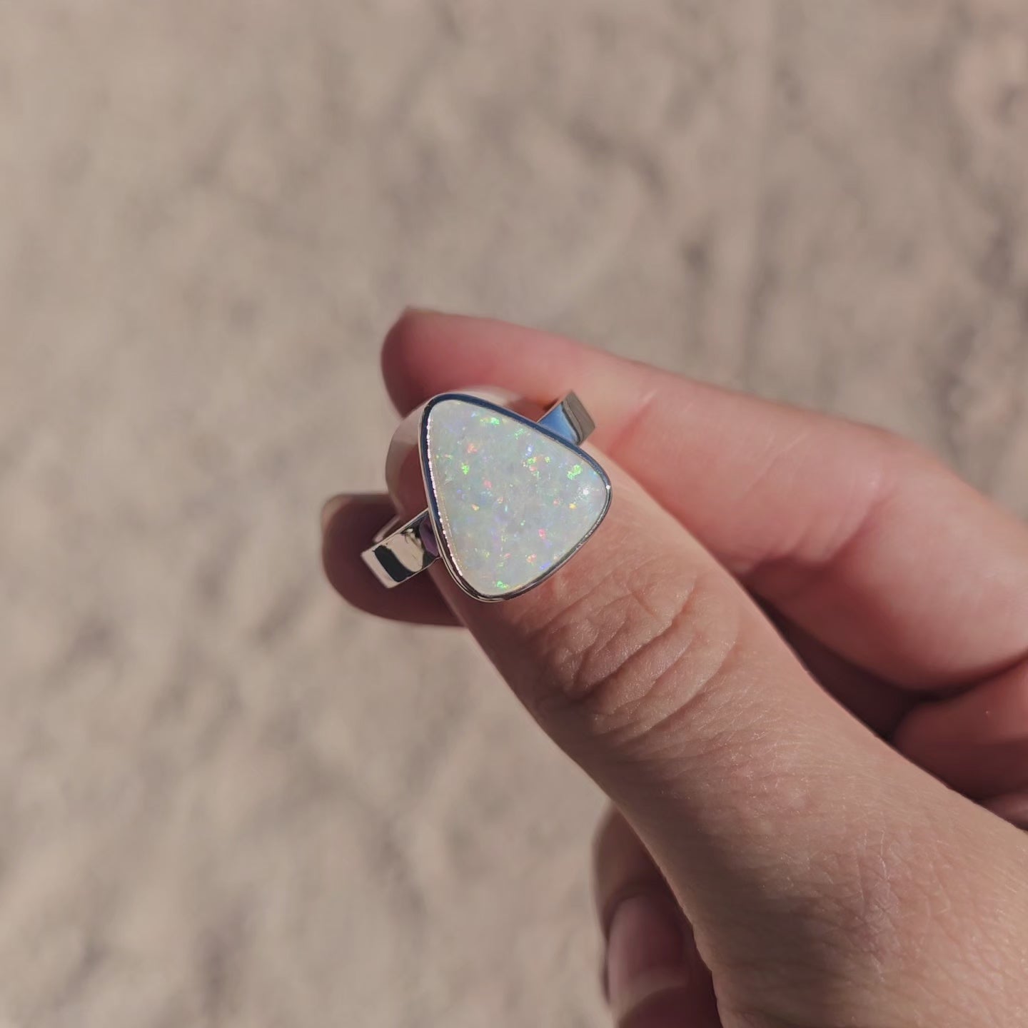 This beautiful piece has a light Opal stone showing full spectrum pinfire colour.