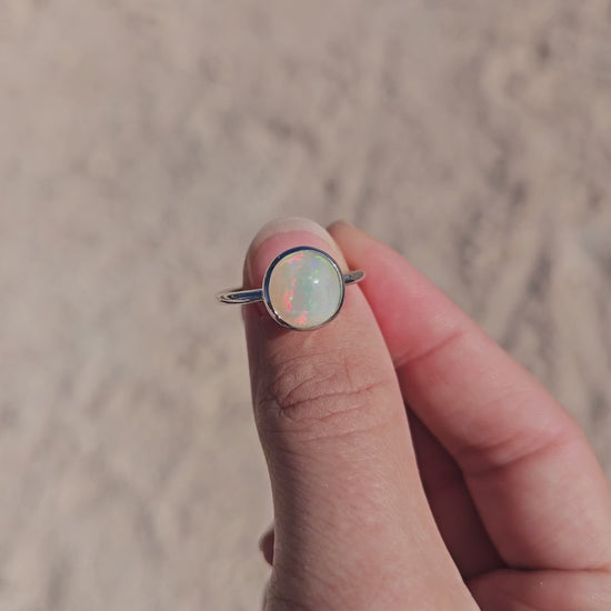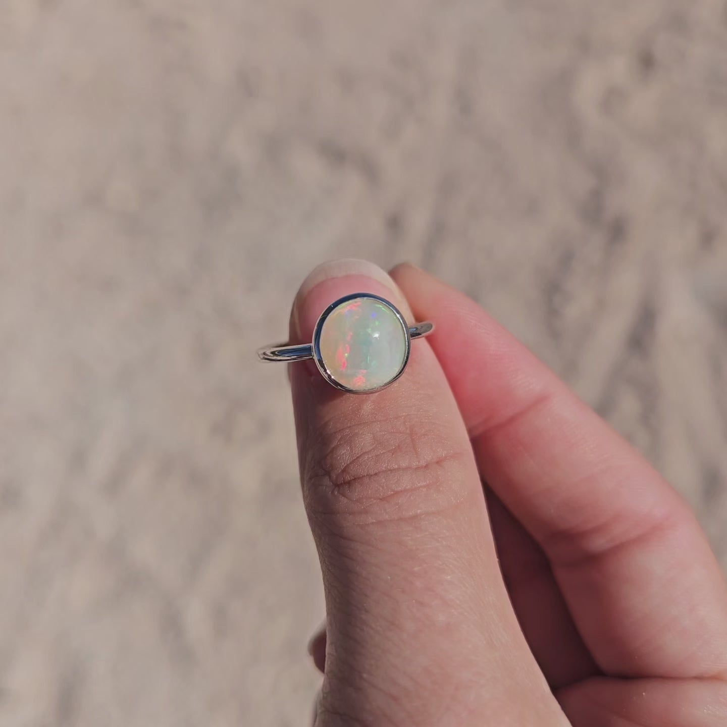 This beautiful piece has a light Opal stone showing full spectrum of colour, displaying bright flashes of red in a unique wave pattern.