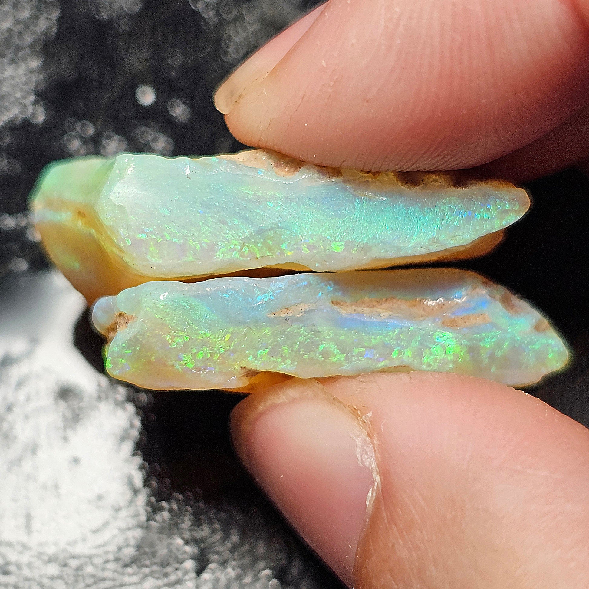 Genuine Australian blue green crystal opal from Coober Pedy. These stones are gem grade showing vibrant blue green colour suitable for cutting solids or made into doublets as they are translucent.